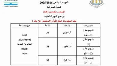برنامج وحدة نظم المعلومات الجغرافية و الاستشعار عن بعد I الأسدس الخامس (S5) الدورة العادية الدورة الموسم الجامعي 2026/2025 –…
