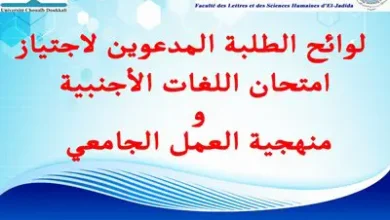 لوائح الطلبة المدعوين لاجتياز امتحان اللغات الأجنبية و منهجية العمل الجامعي مسلك الدراسات الفرنسية يوم السبت 03 يناير 2026 الدورة…
