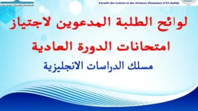 لوائح الطلبة المدعوين لاجتياز الامتحانات العادية لمسلك الدراسات الانجليزية أيام 03، 05، 06 و 07 يناير 2026