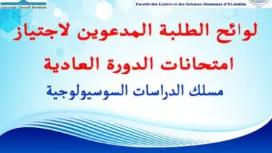 لوائح الطلبة المدعوين لاجتياز الامتحانات العادية للدورة الخريفية 2026/2025 لمسلك سوسيولوجيا أيام 03، 05، 06 و 07 يناير 2026 – FLSHJ