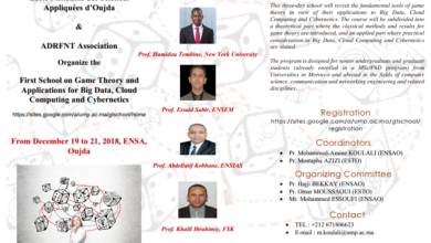 L’ENSAO et l’ADRFNT organisent l’école : “First School on Game Theory and Applications for Big Data, Cloud Computing and Cybernetics”…