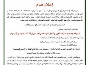 فتح باب الترشيحات لجائزة مولاي علي الشريف للدراسات والأبحاث العلمية في دورتها الثانية تحت شعار: العلم نور الحياة ورافعة بناء…