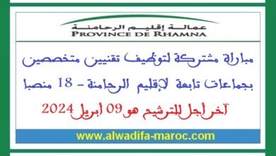 عمالة إقليم الرحامنة: مباراة مشتركة لتوظيف تقنيين متخصصين بجماعات تابعة لإقليم الرحامنة