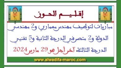 مباريات لتوظيف مهندس معماري و2 مهندسي الدولة و2 متصرفي الدرجة الثانية و5 تقنيي الدرجة الثالثة، آخر أجل هو 29 مارس 2024