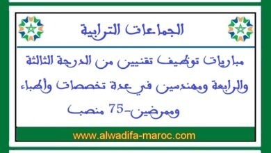 مباريات توظيف تقنيين من الدرجة الثالثة والرابعة ومهندسين في عدة تخصصات وأطباء وممرضين-75 منصب
