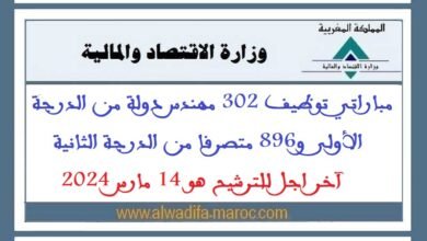 مبارتي توظيف 302 مهندس دولة من الدرجة الأولى و896 متصرفا من الدرجة الثانية. آخر اجل للترشيح هو 14 مارس 2024
