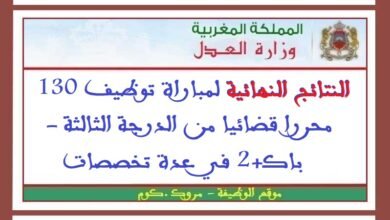 النتائج النهائية لمباراة توظيف 130 محررا قضائيا من الدرجة الثالثة -باك+2 في عدة تخصصات