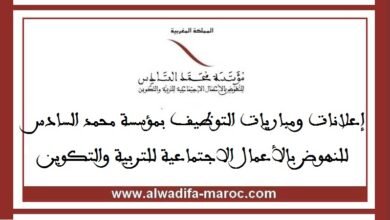 شارك المملكة المغربية مؤسسة محمد السادس للنهوض بالأعمال الاجتماعية للتربية والتكوين بتصرف من موقع الوظيفة…