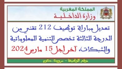 تعديل مباراة توظيف 212 تقني من الدرجة الثالثة تخصص التنمية المعلوماتية والشبكات، آخر أجل 15 مارس 2024