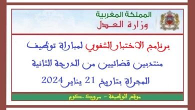 برنامج الاختبار الشفوي لمباراة توظيف منتدبين قضائيين من الدرجة الثانية المجراة بتاريخ 21 يناير 2024