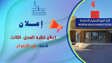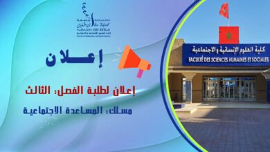 إعلان لطلبة الفصل الثالث مسلك المساعدة الاجتماعية