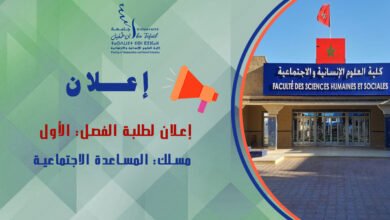 إعلان لطلبة الفصل الأول مسلك المساعدة الاجتماعية