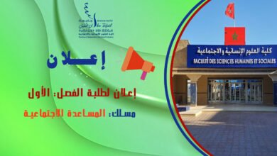 إعلان لطلبة الفصل الأول مسلك المساعدة الاجتماعة