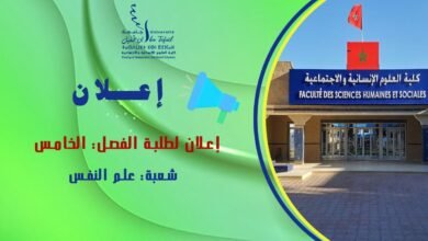 يخبر الأستاذ: نبيل شكوح طلبة الفصل الخامس شعبة علم النفس أنه سيخصص حصة إضافية يوم الأربعاء 17/12/2025 من الساعة 10h00 إلى الساعة…