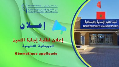 إعلان لطلبة إجازة التميز «الجيوماتية التطبيقية Géomatique appliquée» فوج 2026/2025