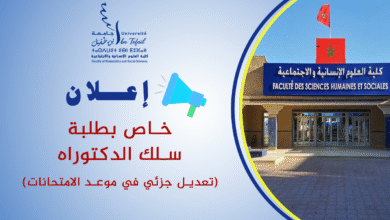 ينهي عميد كلية العلوم الانسانية والاجتماعية بجامعة ابن طفيل – القنيطرة – إلى علم جميع الطلبة المسجلين في سلك الإجازة ومسالك…