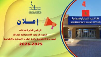 البرنامج العام لامتحانات الدورة الخريفية العادية لمسالك المساعدة الاجتماعية للموسم الجامعي 2026/2025