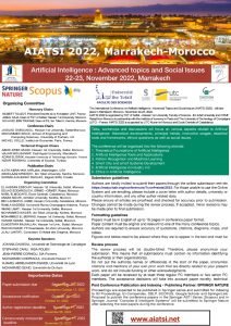2. Conférence internationale et communications scientifiques sur l’Intelligence Artificielle les 22 et 23 Novembre 2022 à hôtel Palm Plaza Marrakech.