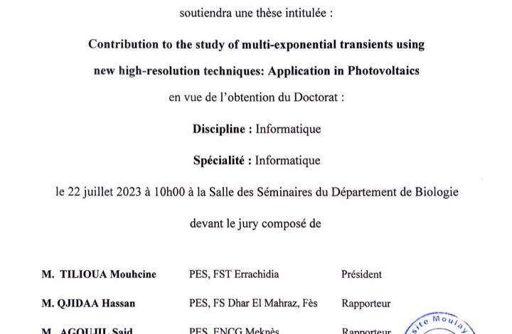 Avis de soutenance de thèse de doctorat en Informatique de Mme Lina EL ABIDI EL ALAOUI